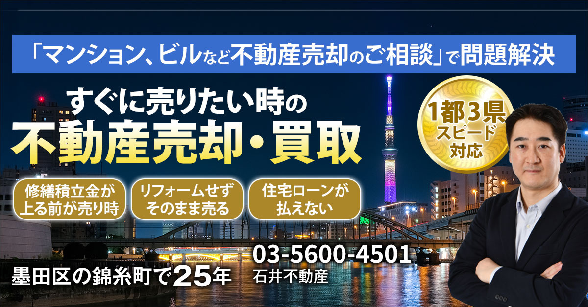 墨田区の石井不動産なら26年以上の経験者が「ワンストップ」で